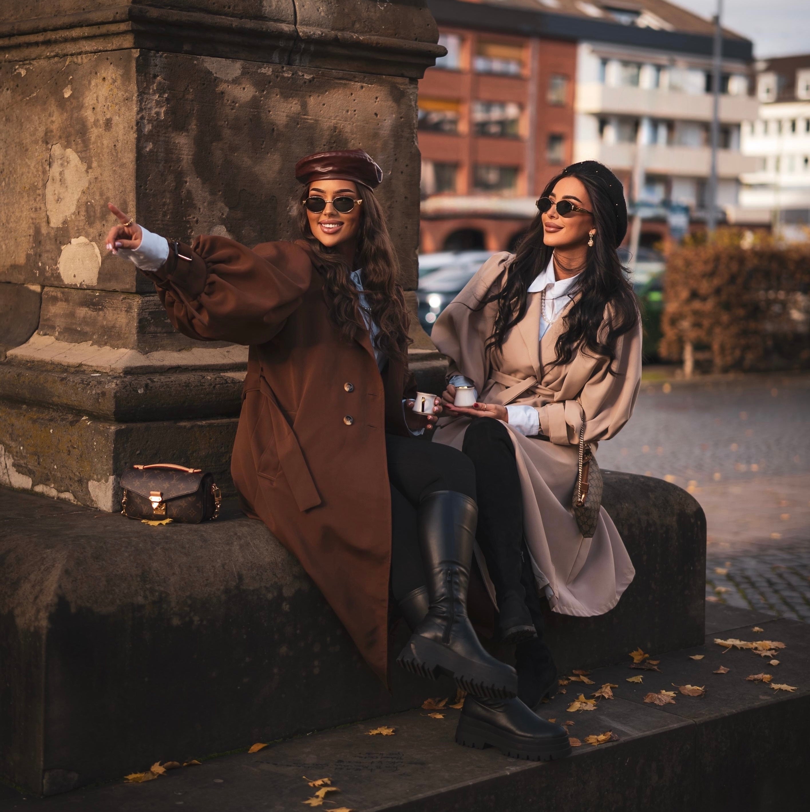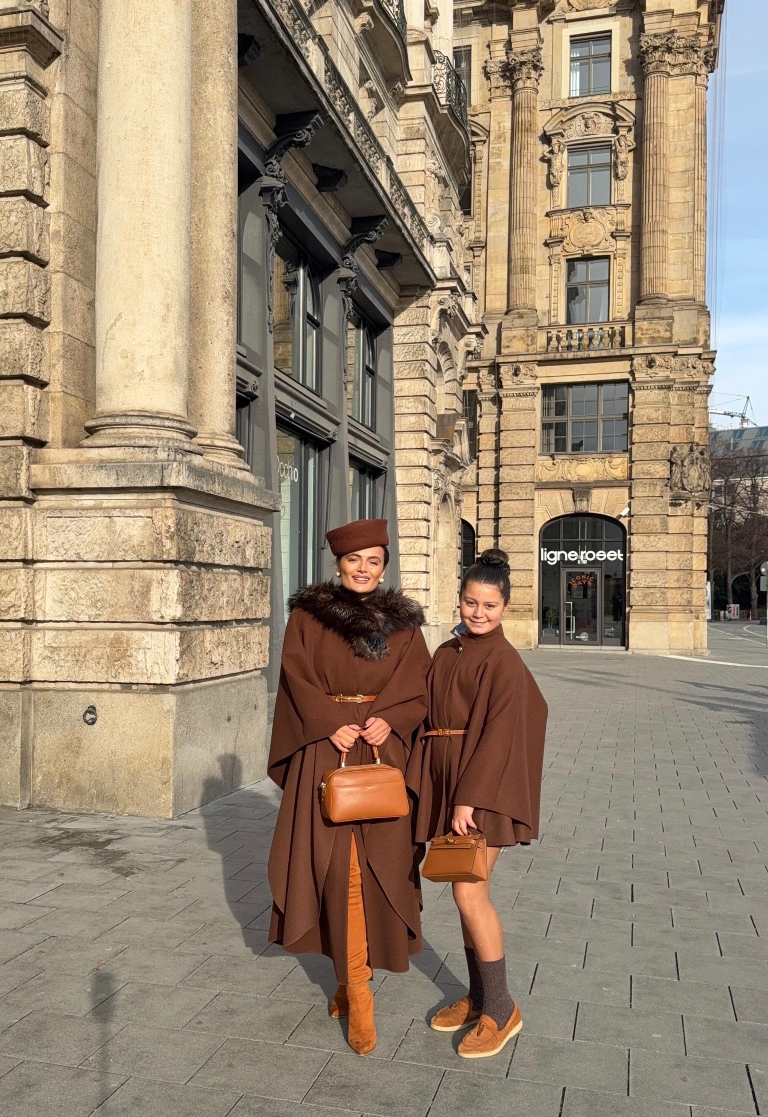 Stilvolles Mama-Tochter-Outfit, perfekt für Herbst- & Winterlooks in elegantem Braun.