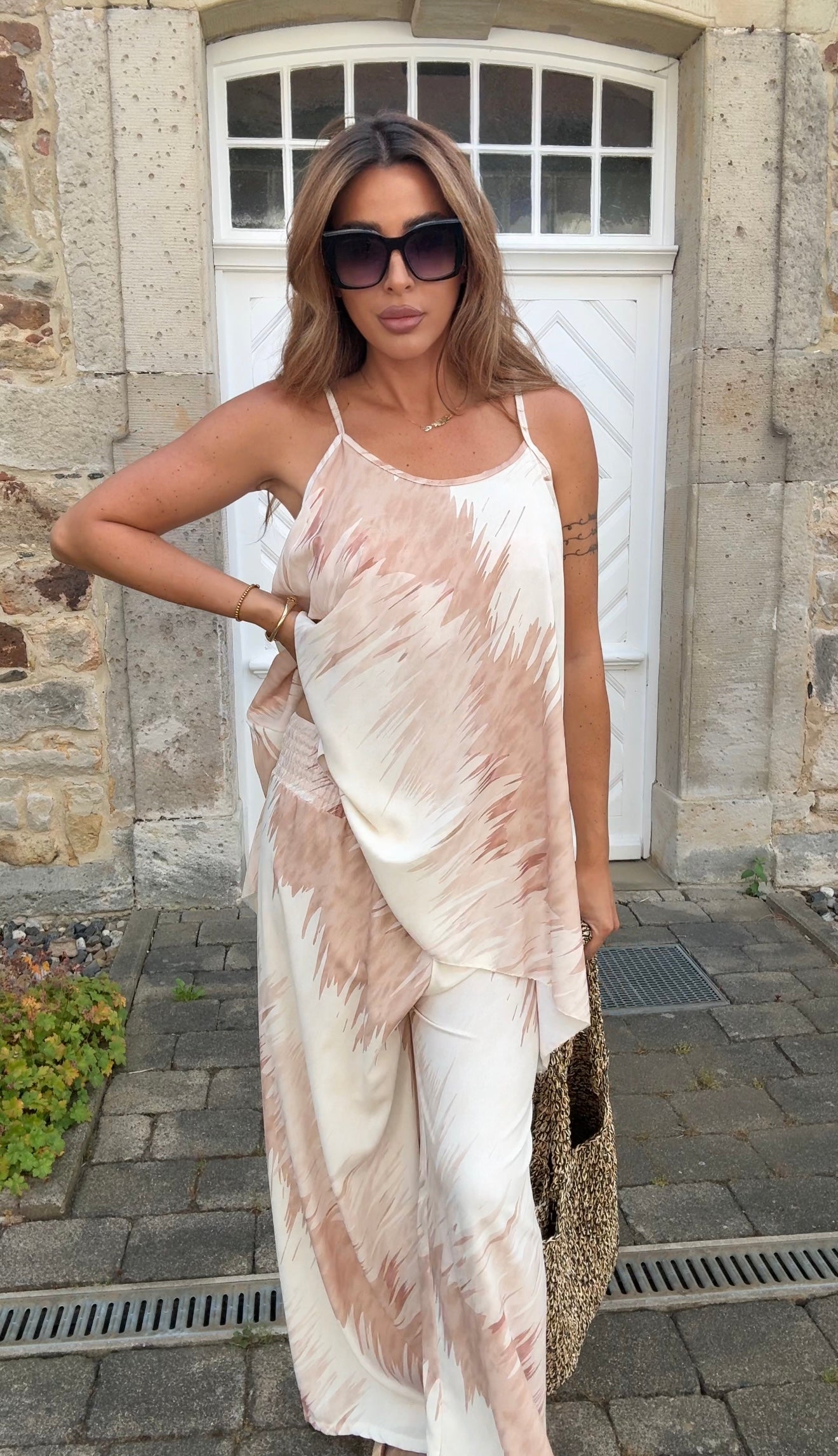 - Two-piece set made of flowing silk – ideal for warm days and mild nights