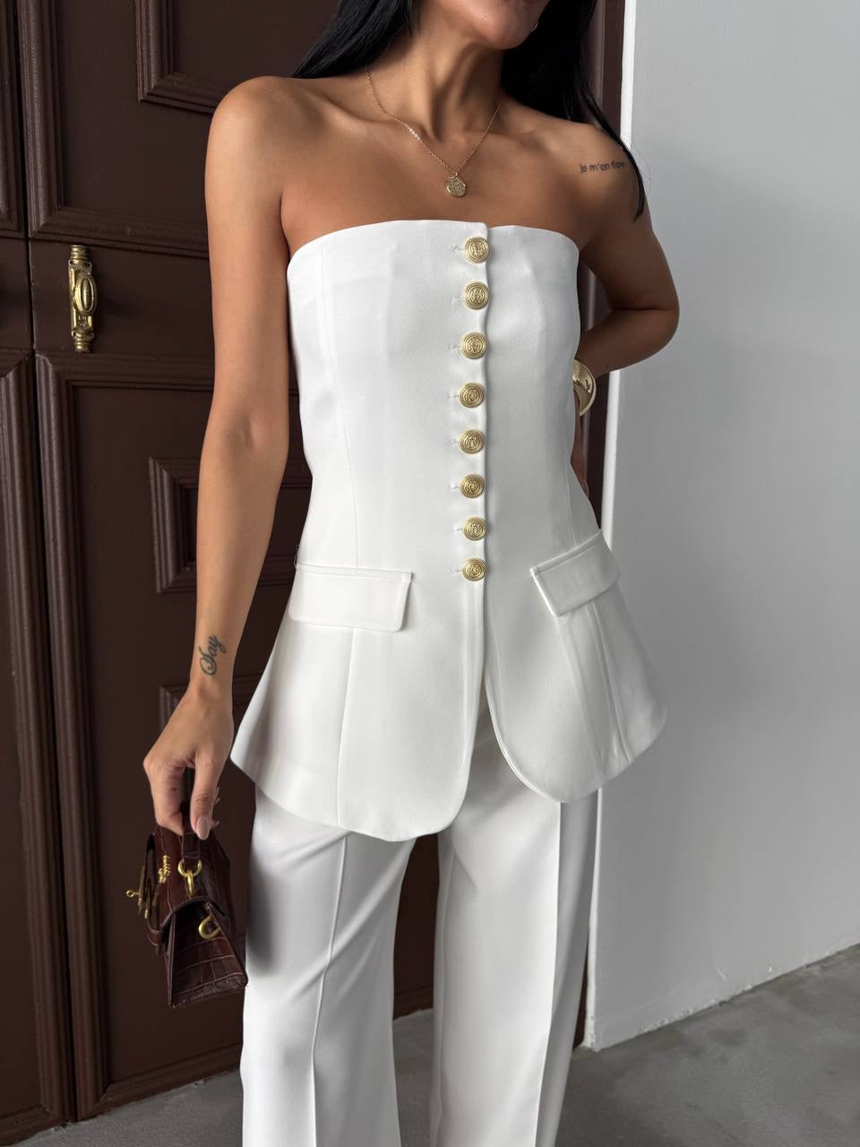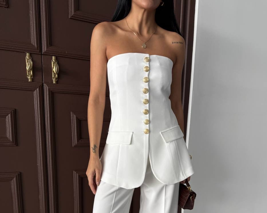 La Chleá Grace: Elegantes Oberteil mit Goldenen Knöpfen