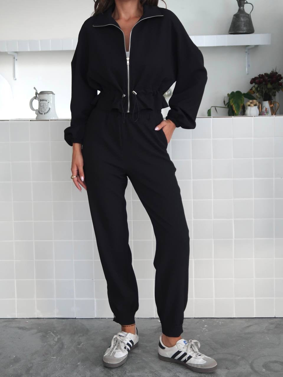 • Zweiteiliges Jogging-Set in Beige & Schwarz