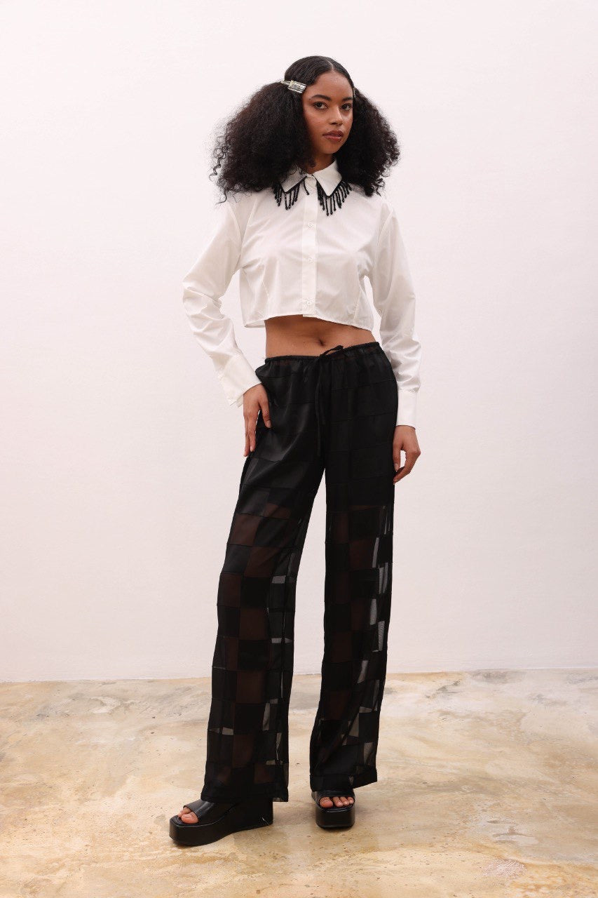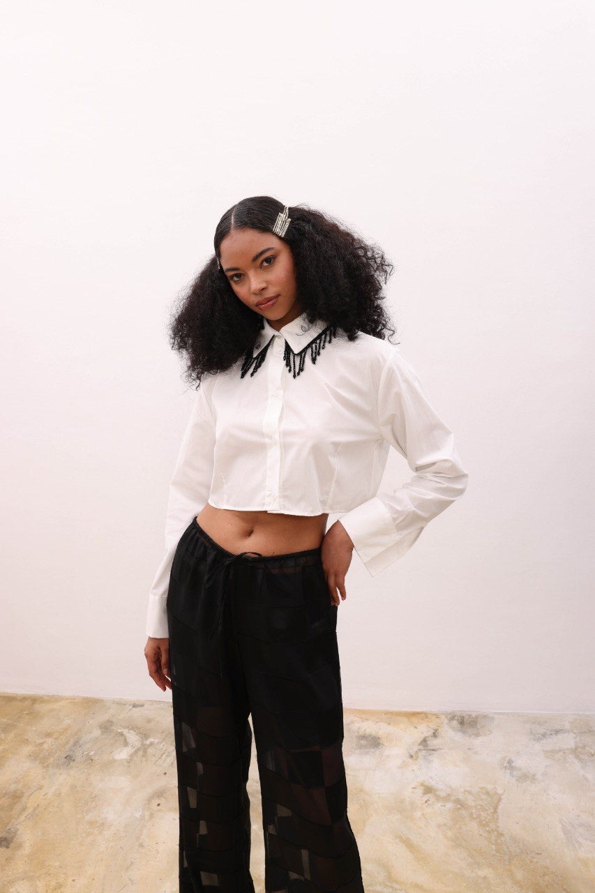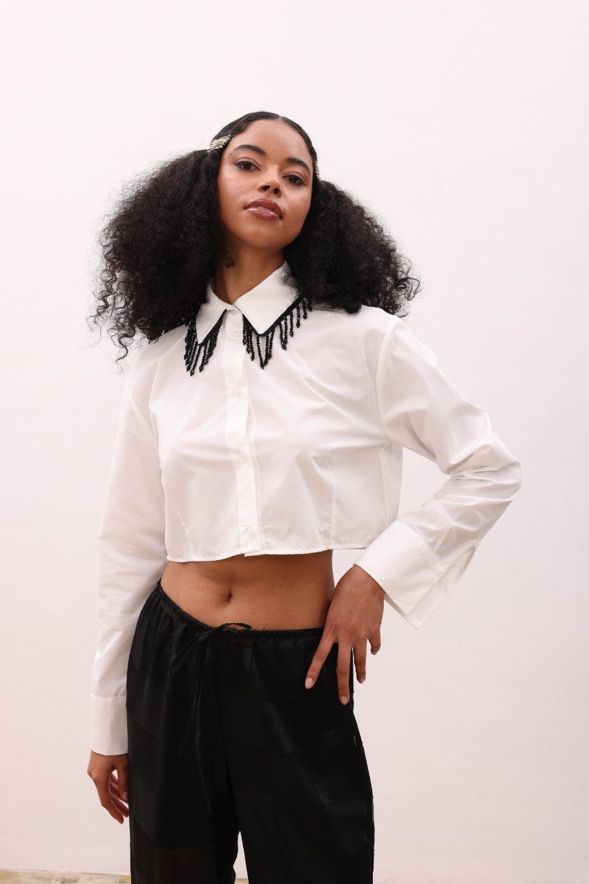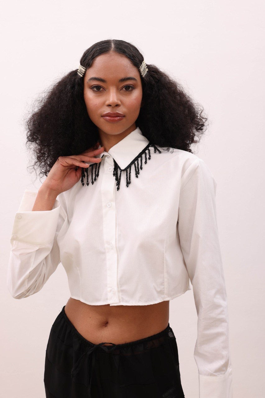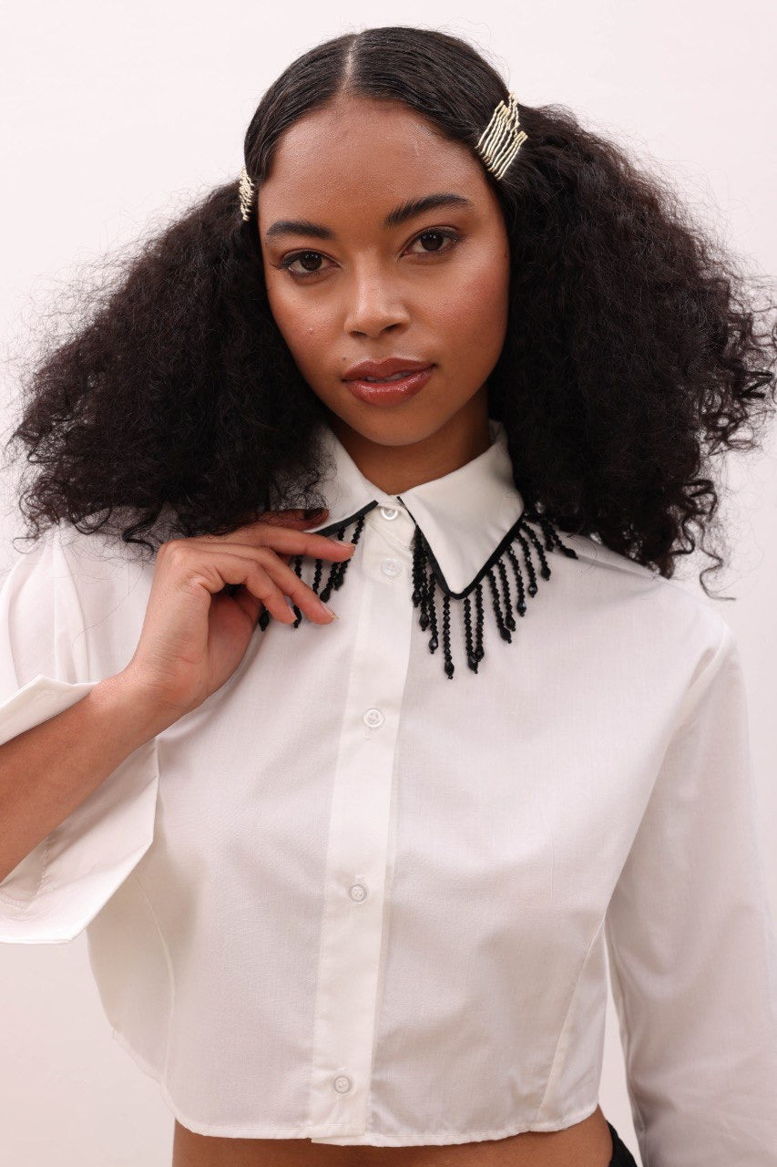 • Besonderer Hingucker: auffällige schwarze Kettendetails am Kragen