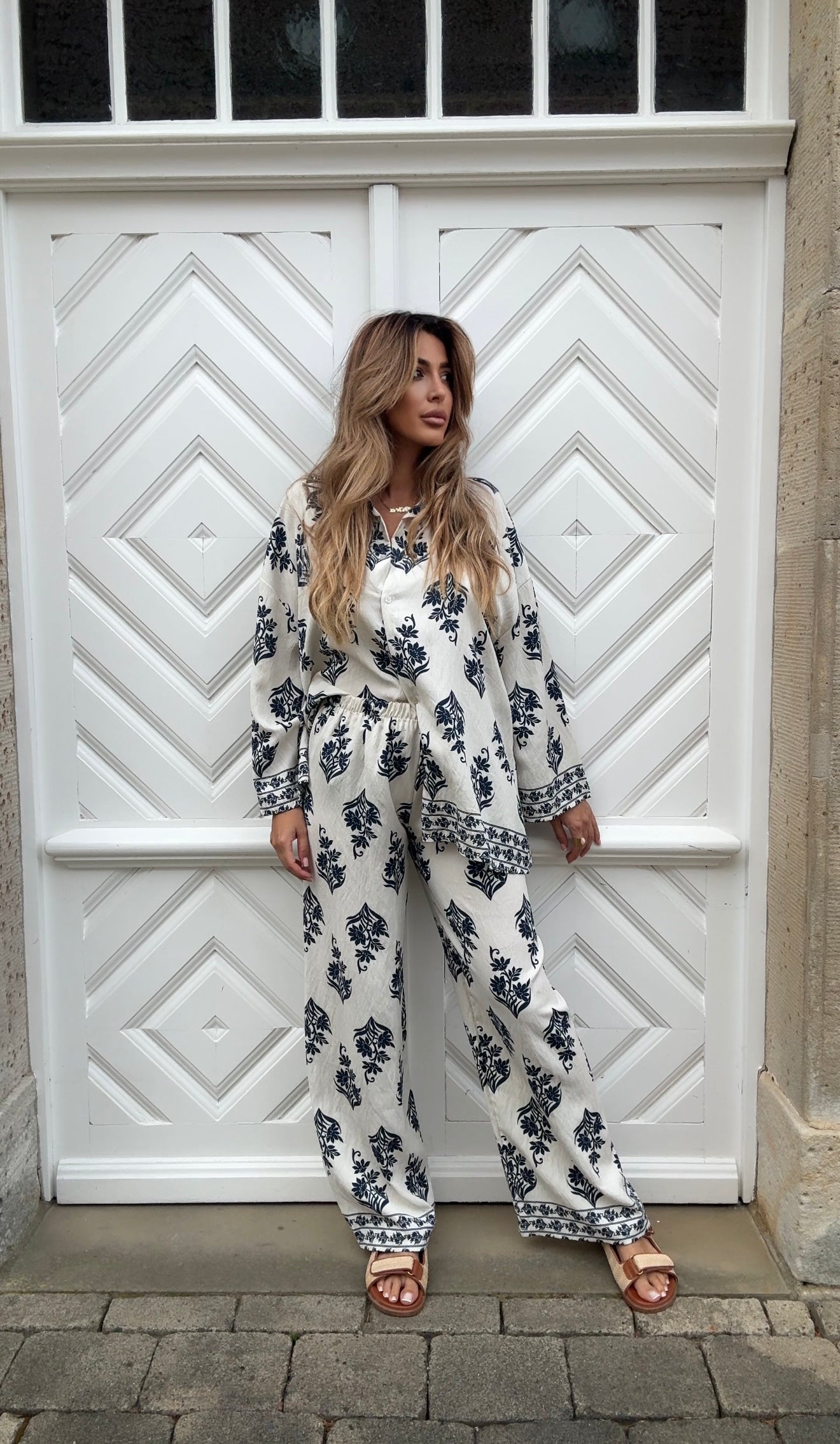 - Zweiteiliges Set aus Bluse & Hose mit floralem Print